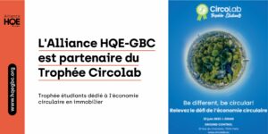 Estelle Réveillard, Directrice de l’Alliance HQE-GBC a participé en tant que membre du jury au Trophée Etudiants Circolab 2022 organisé le jeudi 23 juin 2022 au Ground Control à Paris. Depuis sa création début 2018, l’Association Circolab promeut l’économie circulaire et le réemploi des produits du bâtiment auprès des professionnels du secteur. Après le lancement du […]