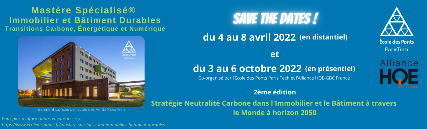 « Stratégie Neutralité Carbone dans l’Immobilier et le Bâtiment à travers le Monde à horizon 2050 » divisé en deux parties dans le cadre du Mastère spécialisé immobilier et bâtiment durables – transitions carbone, énergétique et numérique.