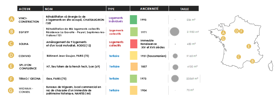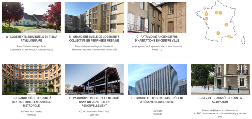 Ci-dessous les informations sur les cas génériques retenus : une diversité de typologies, patrimoines, localisations et échelles de projet vectrices de complexité :