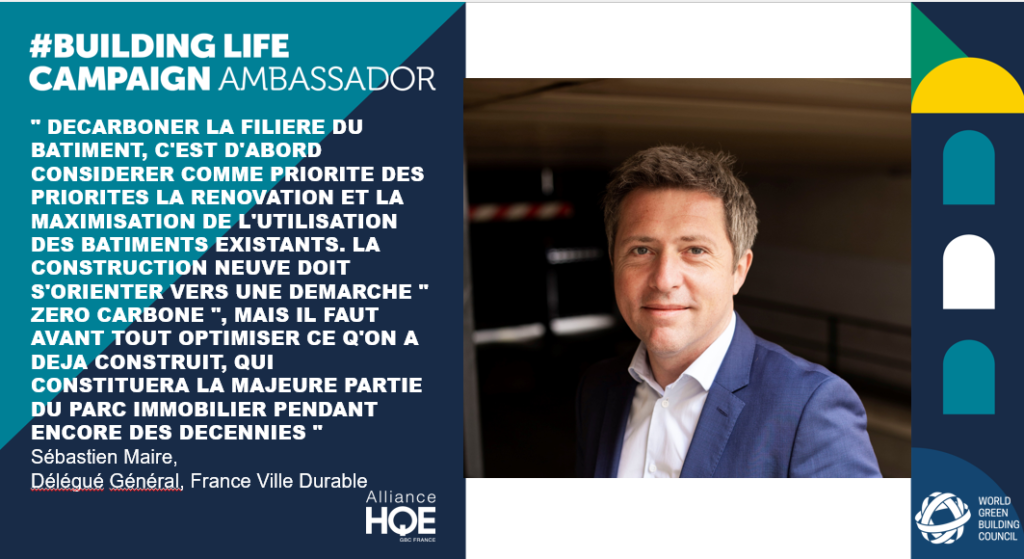 L’Alliance HQE-GBC donne la parole à des personnalités du secteur du bâtiment en tant qu’ambassadeur de la campagne #BuildingLife pour partager leurs solutions et échanger leurs bonnes pratiques visant à accélérer la décarbonation des bâtiments et ainsi lutter contre le réchauffement climatique et l’effondrement de la biodiversité.