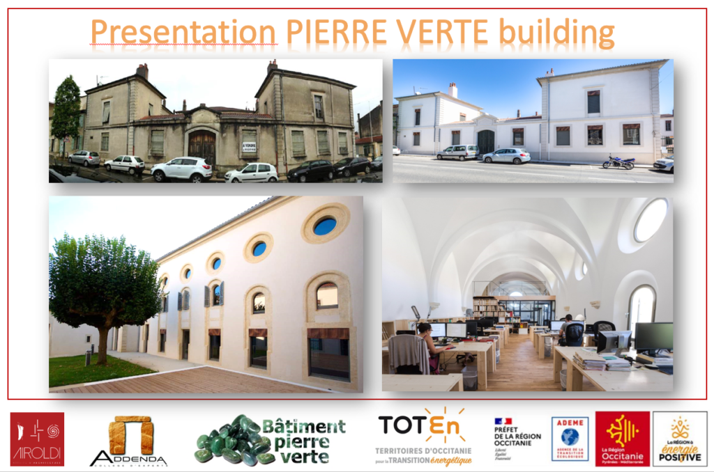 Alain CASTELLS, manager of the ADDENDA design office, presented the renovation project for their new headquarters in a historic mansion built in 1760, which was first used as a school and then as a gendarmerie. The objective is to have a heritage building, with positive energy, low carbon and 100% energy autonomy. Project started in 2014, first phase in 2016 and a second phase in 2021.